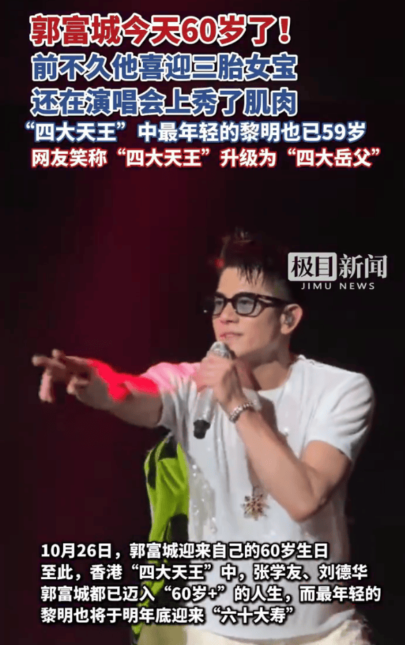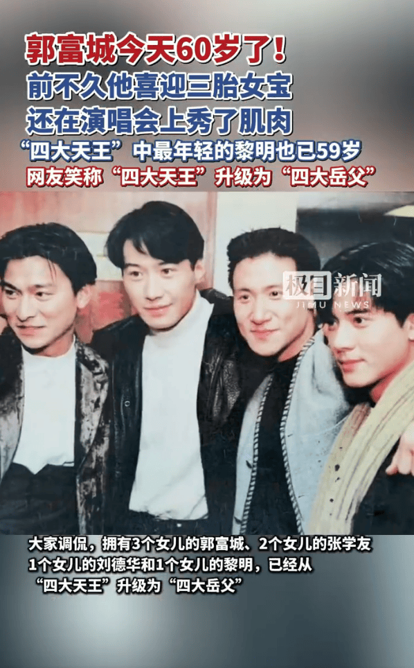 至此,香港“四大天王”中,张学友、刘德华、郭富城都已迈入“60岁+”的人生,而最年轻的黎明也将于明年底迎来“六十大寿”。