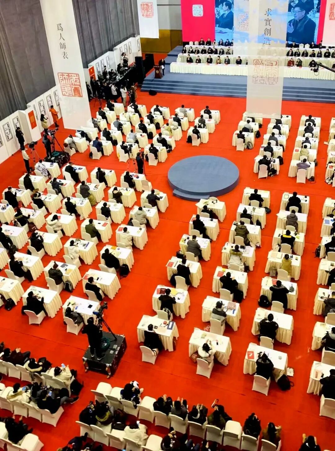 2019年,全国大学生篆刻大展现场创作大会。